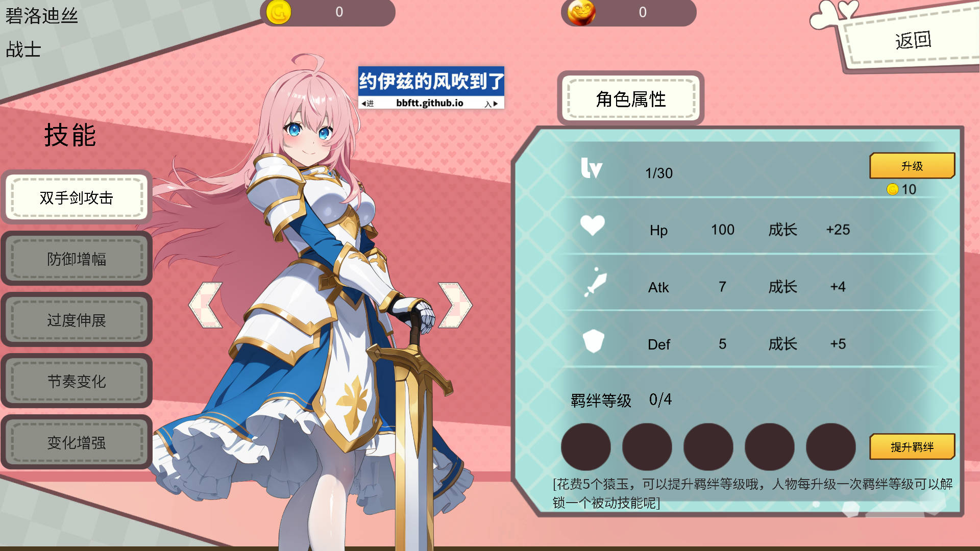 角色等级:可以通过金币为美少女提升等级,可提升各项属性。