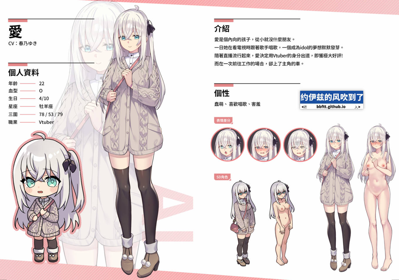 热爱歌唱、内向且喜好宅居的少女。