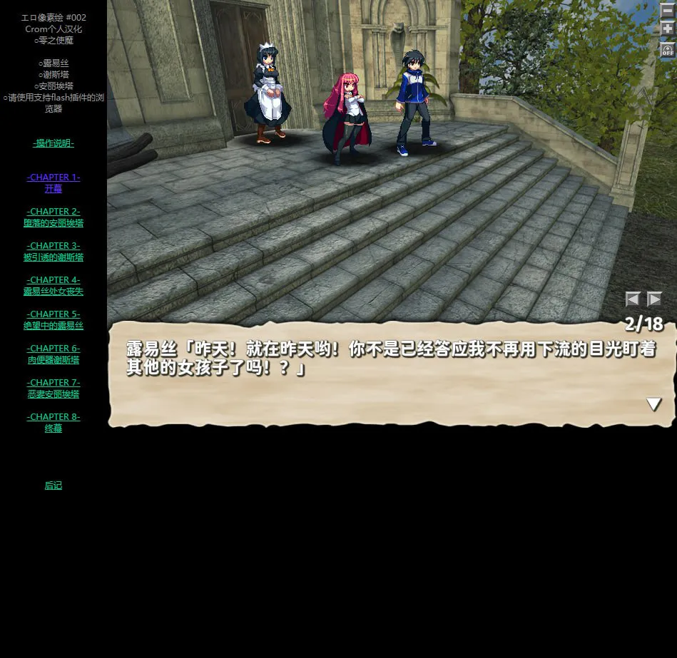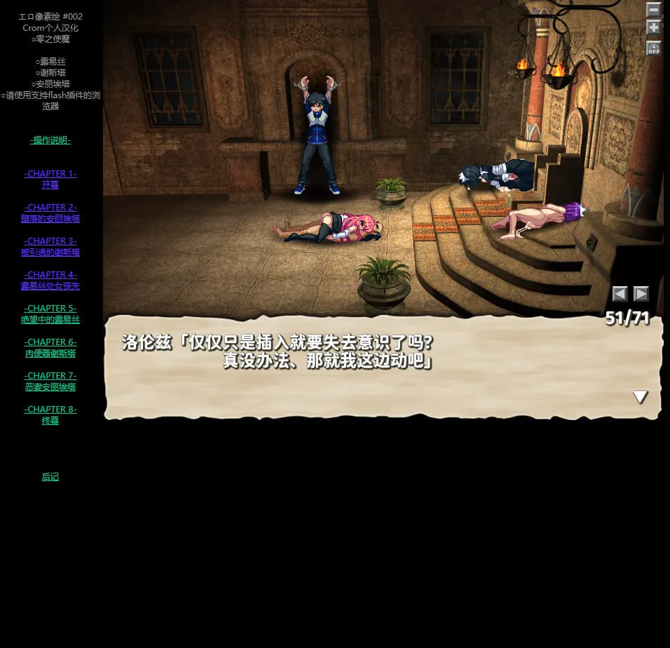 游玩方式:打开index.htm,请使用支持Flash插件的浏览器阅览!(汉化者使用的是谷歌浏览器)